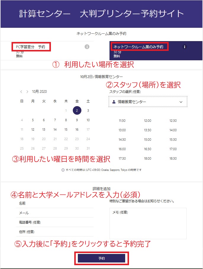 - 利用するには、「予約サイト」にて予約が必要となります。