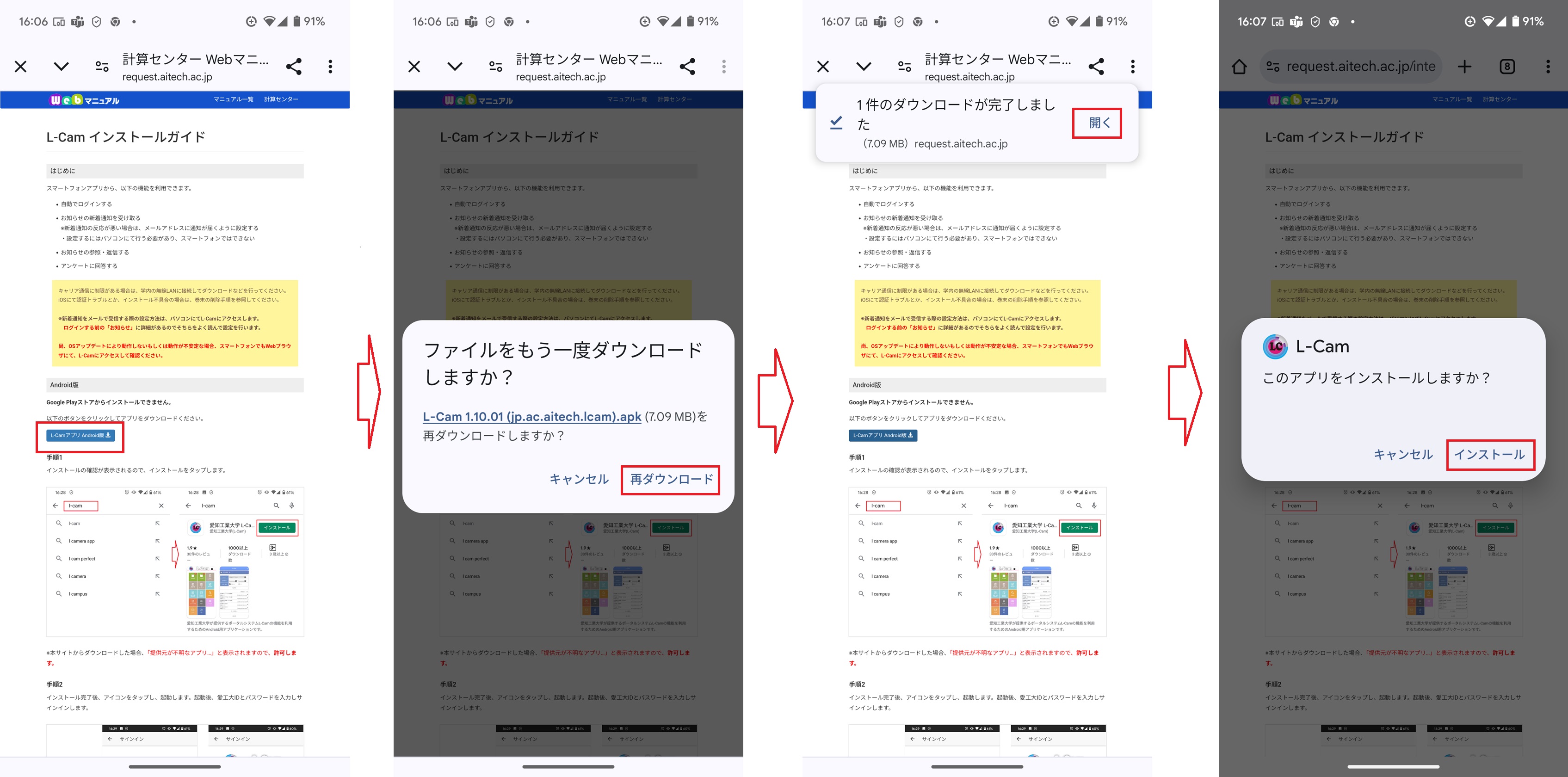 - ダウンロードの手順は以下の通り行い、インストールをタップします。