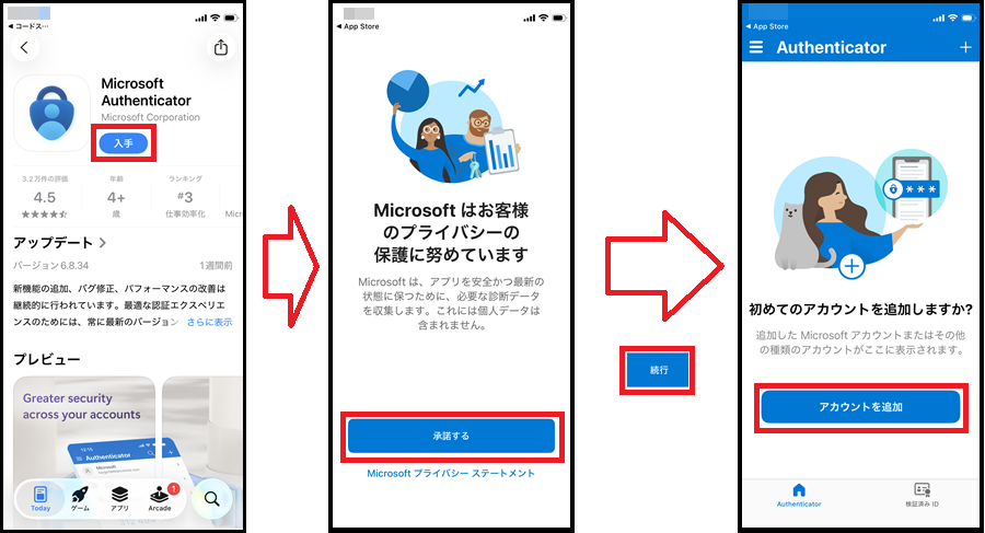 - 認証アプリは、「Microsoft Authenticator」を導入ください。