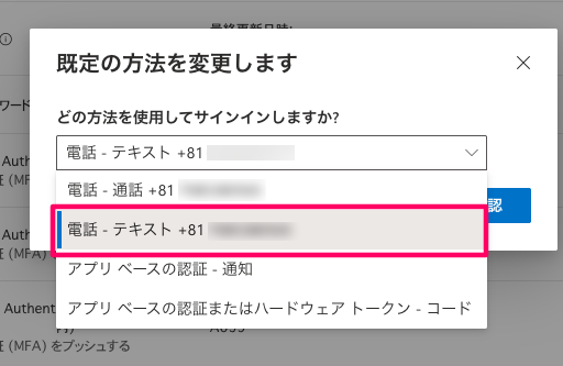 (任意)デフォルトの認証手順をSMS認証に変更しておくと便利です。