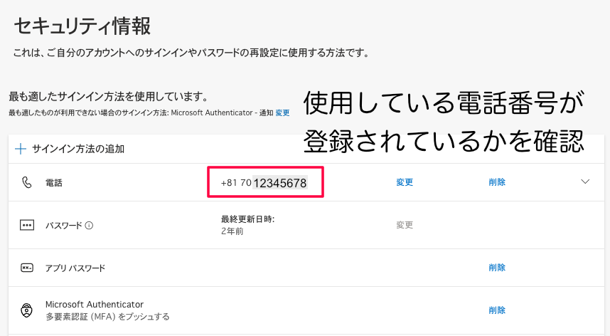 使用している電話番号が登録されているかを確認します。